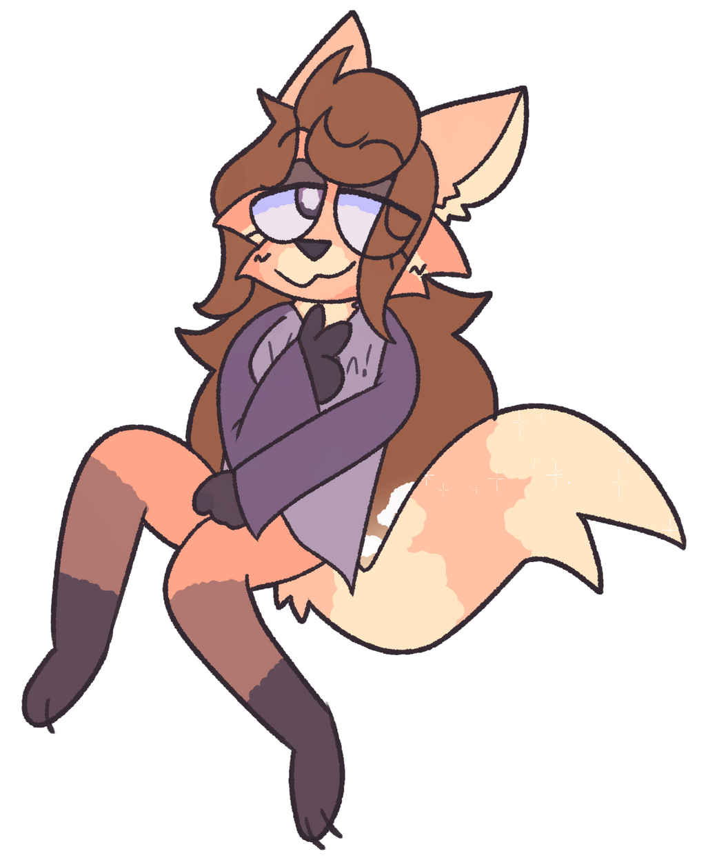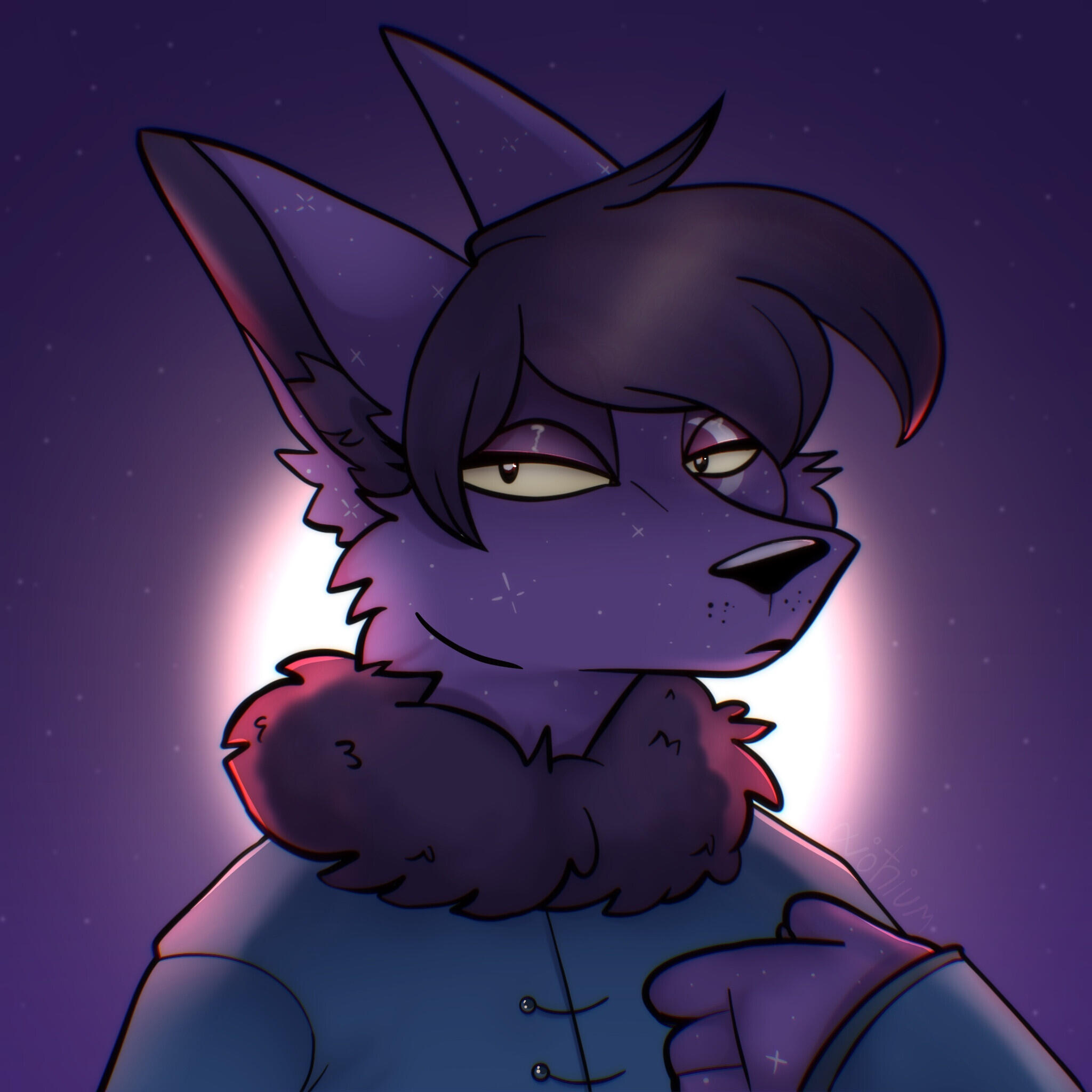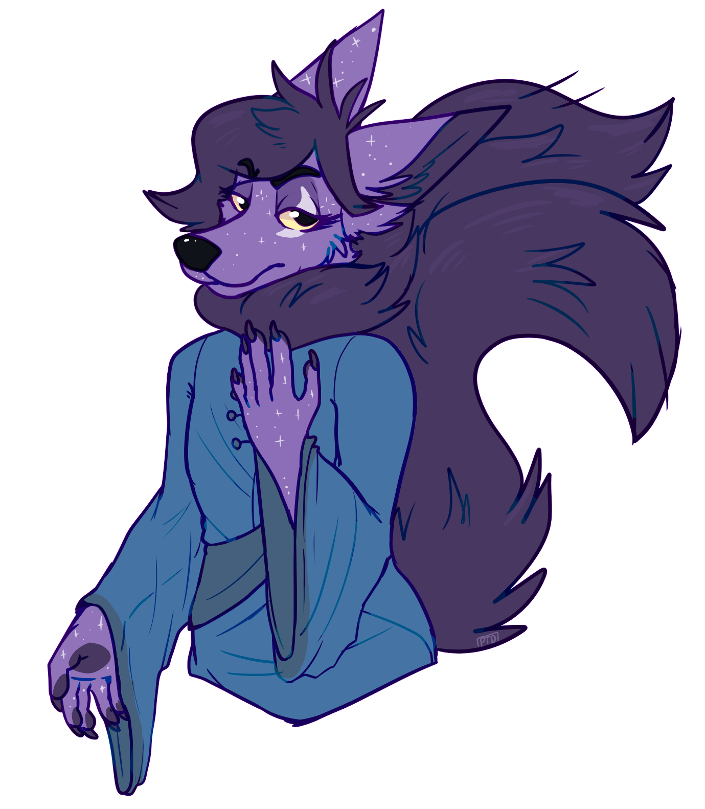 Mysterious and secretive, Axela is the physical embodiment of Lex’s negative side and anxieties.Axela is mostly intangible. Her entire body is composed of star matter, except for her dark purple bits, which are made of tangible dark matter. She can add and subtract tails at will but prefers to keep the number of tails at two.Axela’s feelings of dread are so intense that she shows no emotion whatsoever. She’s one of my few characters who never smiles at all.Despite her not having a visible brain, it’s “all throughout her body”. Her brain waves, when the frequency is heightened, can be projected by herself onto musical programs and made into music.In a way, Axela has always persisted; she was formed after a star somewhere in the universe died hundreds of earth years ago, and then depended on latching onto anxious individuals and draining the vitality out of them. Lex was the one who she was attached to for the longest, thus why Axela now appears foxlike. Eventually she was ripped from Lex’s body and aftwerward, Axela started living as a normal(?) anthropomorphic animal rather than a happiness-draining parasite.She was a vent OC made during a rough patch in my life in 2017. She used to be a feral blue starry fox rather than an anthro purple one.I have considered giving Axela her own bandcamp page multiple times.To date, she has the most releases of any alias of mine.