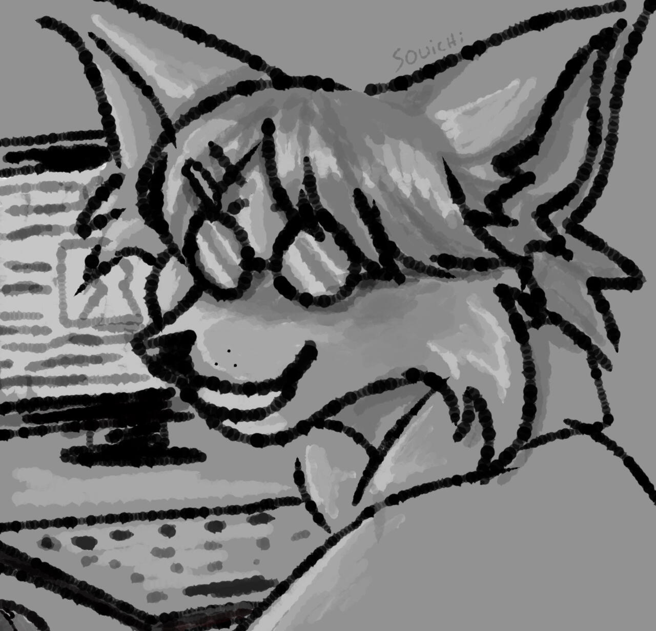 A sporadic entity with an excitable personality; Rob is a plant cat of little words. He can usually be seen staring into the distance. He possesses a few odd qualities along with that; due to his skeletal structure being composed entirely of roots, he can contort his body in odd ways, and his pupils can change shape.Rob's music relies heavily on sampling and crudely splicing different songs together. When listening to its music, one can clearly tell which sample packs it used and the musicians it was inspired by. It is a being of little originality, but it is happy that way.Rob can traverse dimensions too, and produces speedcore, shitcore, mashcore and gabber.