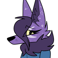 Mysterious and secretive, Axela is the physical embodiment of Lex’s negative side and anxieties.Axela is mostly intangible. Her entire body is composed of star matter, except for her dark purple bits, which are made of tangible dark matter. She can add and subtract tails at will but prefers to keep the number of tails at two.Axela’s feelings of dread are so intense that she shows no emotion whatsoever. She’s one of my few characters who never smiles at all.Despite her not having a visible brain, it’s “all throughout her body”. Her brain waves, when the frequency is heightened, can be projected by herself onto musical programs and made into music.In a way, Axela has always persisted; she was formed after a star somewhere in the universe died hundreds of earth years ago, and then depended on latching onto anxious individuals and draining the vitality out of them. Lex was the one who she was attached to for the longest, thus why Axela now appears foxlike. Eventually she was ripped from Lex’s body and aftwerward, Axela started living as a normal(?) anthropomorphic animal rather than a happiness-draining parasite.She was a vent OC made during a rough patch in my life in 2017. She used to be a feral blue starry fox rather than an anthro purple one.I have considered giving Axela her own bandcamp page multiple times.To date, she has the most releases of any alias of mine.